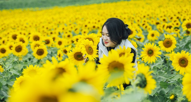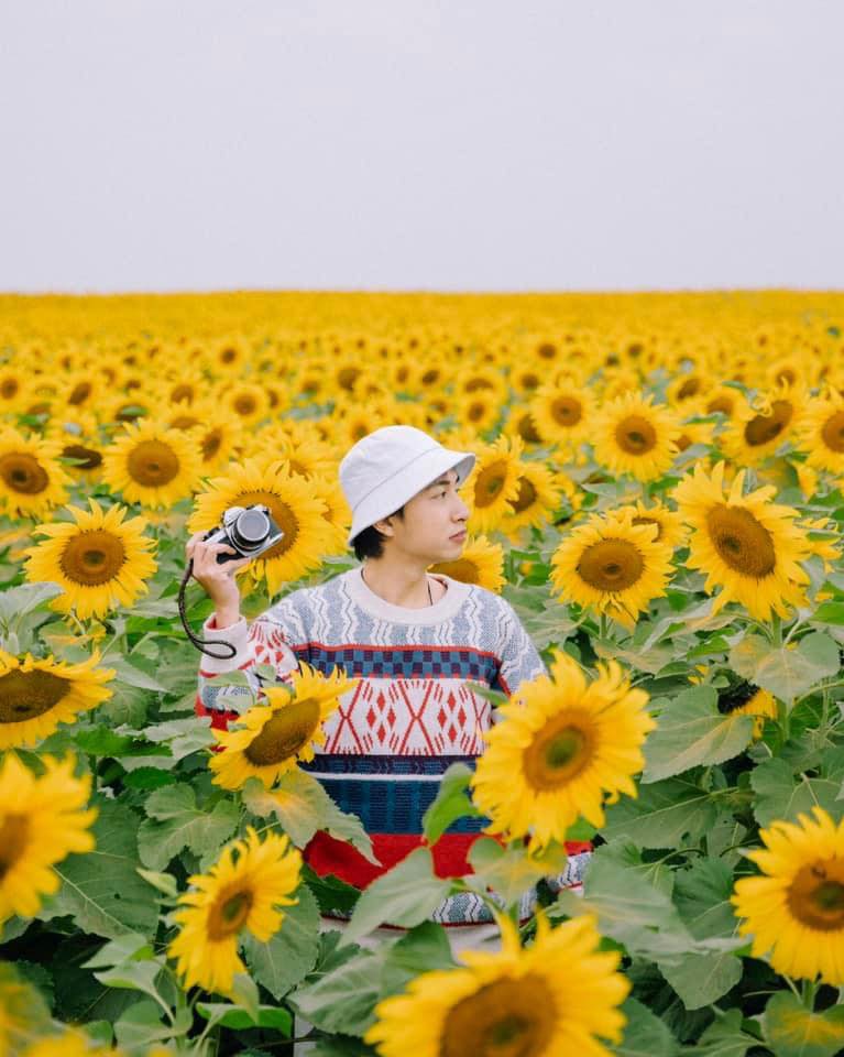 - Vì hoa hướng dương cao quá đầu người, do đó để có những tấm hình đẹp nhất, bạn nên cân nhắc thuê thang với giá 30.000 VNĐ/1 giờ;