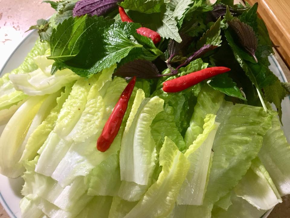 Bánh có thể ăn kèm với xà lách, rau tía tô, bắp cải...cùng nước mắm chua ngọt rất phù hợp.