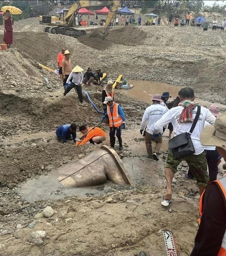 Do mực nước sông Mê kong khô hạn, nên tượng nhô lên khỏi mặt nước, được người dân phát hiện.