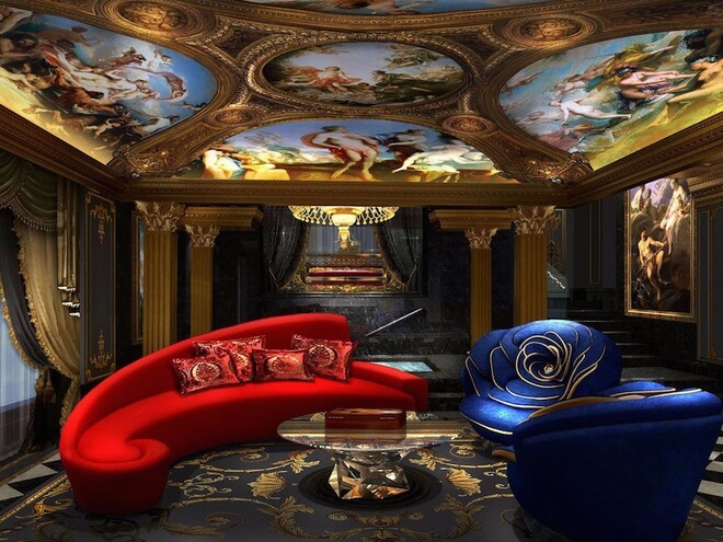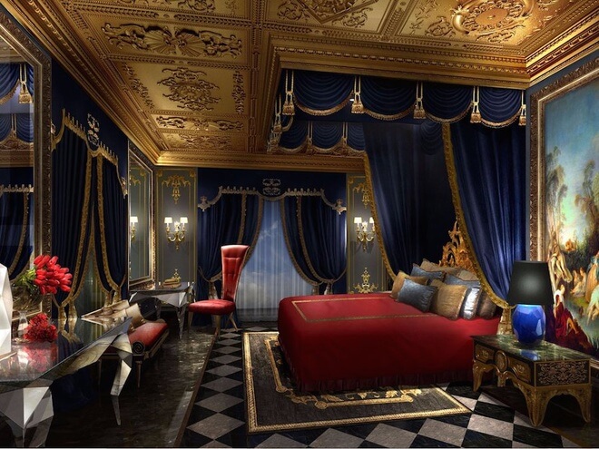 Phòng ngủ hoàng gia với chiếc giường cỡ lớn trải nhung. Mỗi căn biệt thự đi kèm với dịch vụ quản gia túc trực 24 giờ. Ngoài ra, khách hàng còn còn được tới những khu vực mua sắm riêng với xe Rolls-Royce Phantom luôn sẵn sàng đưa đón.