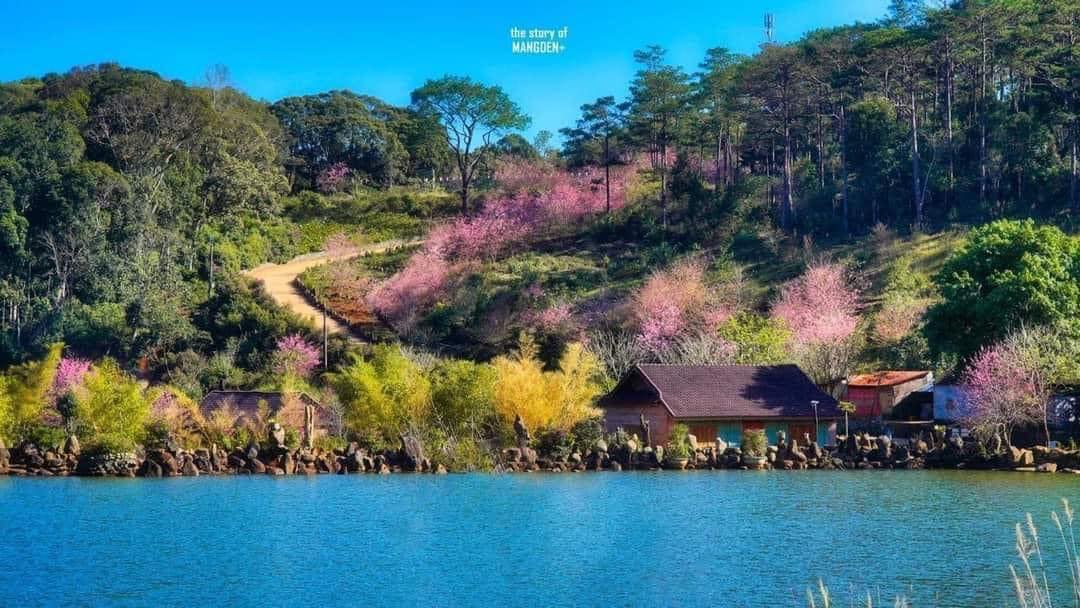 Môt trong những địa điểm mà bạn phải check-in tại Măng Đen là hồ Đăk Ke hay còn có tên là hồ Toong Hơ Poong. Hồ còn là nơi xuất hiện trong truyền thuyết 7 hồ 3 thác của Măng Đen. Hơn thế nữa, các loài hoa khoe sắc bên bờ hồ trong veo cũng đã làm tăng thêm sự thơ mộng này. Thế nên khi đến đây, bạn sẽ mê mẩn với khung cảnh tuyệt vời này cho xem.