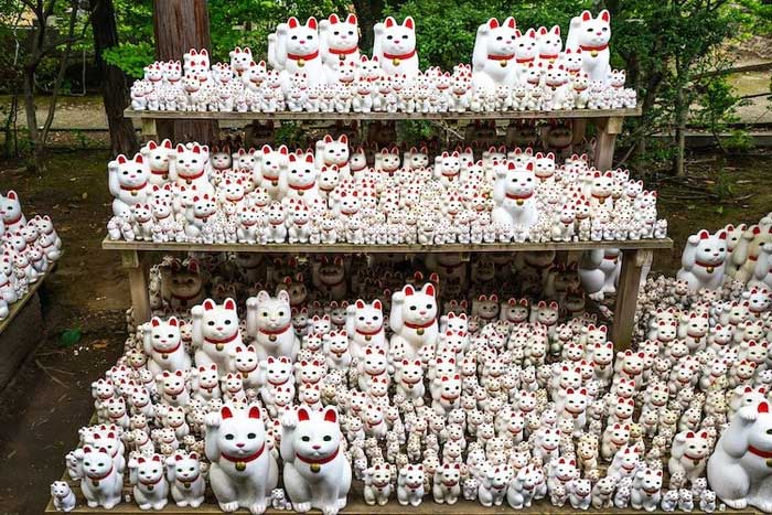 Giờ đây, tượng maneki-neko có thể được tìm thấy trong các cửa hàng và doanh nghiệp trên khắp Nhật Bản và cả nhiều nơi trên thế giới. Tuy nhiên, nếu bạn muốn tìm hiểu về sự phát triển của nó qua các thời đại, hãy đến Bảo tàng Nghệ thuật Manekineko ở Okayama. Nơi đây trưng bày bộ sưu tập hơn 700 bức tượng mèo may mắn từ các thời đại trong lịch sử.
