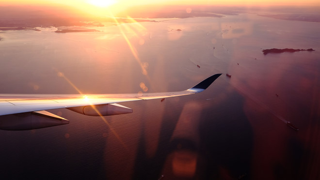 Hàn Quốc đẹp nao lòng từ lúc chuyến bay đáp xuống sân bay Incheon. Ánh nắng ngược tạo ven vàng trên cánh máy bay và ánh lên qua khung cửa sổ cũng đủ khiến bạn trẻ “cuồng chân”.
