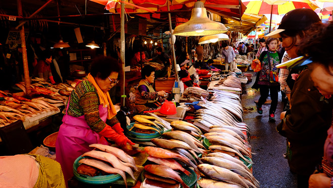 Hàn Quốc nằm ở khu vực Đông Bắc Á với 3 mặt giáp biển nên thời tiết quanh năm khá dễ chịu, đồng thời sở hữu nguồn hải sản phong phú, tươi ngon. Một trong những điểm đến dành cho tín đồ ẩm thực là chợ cá Jagalchi.