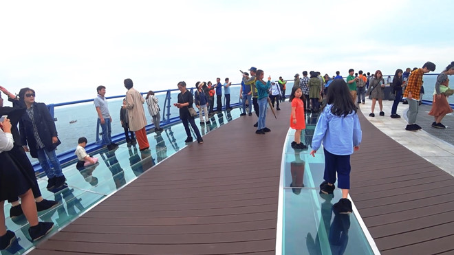 Vừa đi vào hoạt động vào tháng 8 năm nay, Cheongsapo Skywalk, nơi được mệnh danh là “con rồng xanh” của làng Cheongsapo, đã xuất hiện vào hành trình của Vinh Gấu. Cảm giác đi trên “xương sống trong suốt” của cây cầu xen lẫn giữa thích thú và hồi hộp.