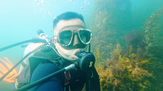 Hoạt động thú vị nhất trong chuyến đi của Vinh Gấu là tham gia lặn biển ở Taejongdae. “Mặc dù hôm ấy biển động nhưng hình ảnh trong video rõ nét vượt ngoài sức tưởng tượng. Ngay cả những chuyển động nhỏ nhất ở dưới đáy đại dương đều được camera ghi lại chân thật và sống động”, anh chia sẻ.