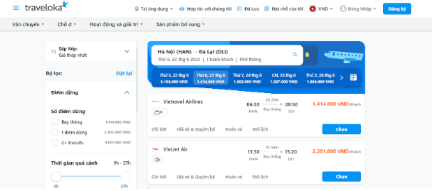 Giá vé máy bay Hà Nội Đà Lạt | Nguồn: Traveloka