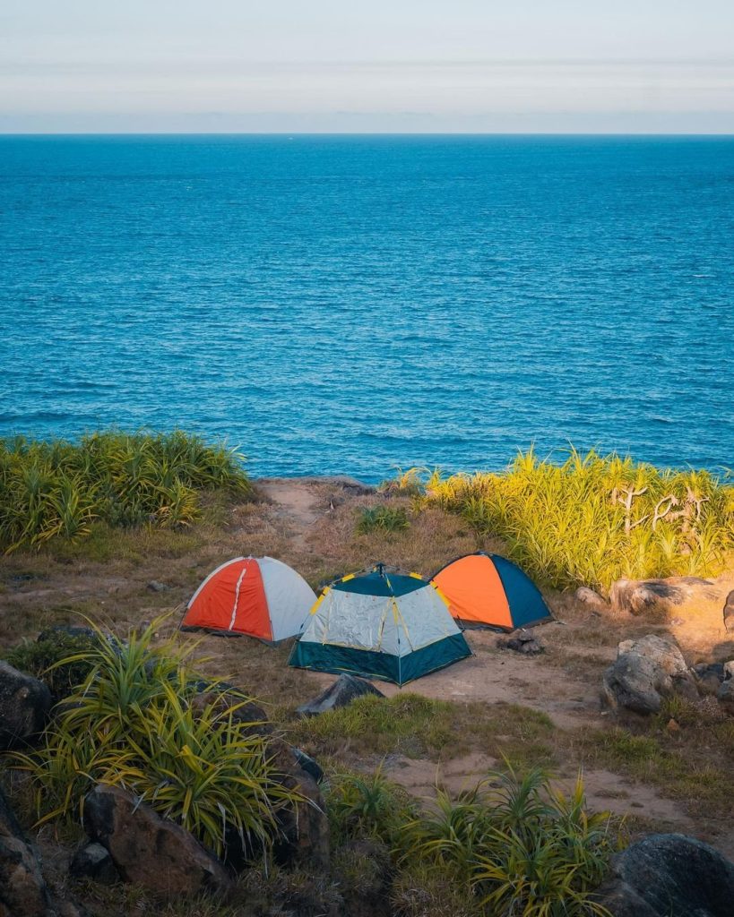 Như đã chia sẻ ở trên, quanh khu vực Mũi Nghê Đà Nẵng có nhiều bãi đất trống, bãi đá lớn. Bạn có thể mang theo lều và chọn những vị trí này làm điểm cắm trại dã ngoại nghỉ qua đêm. Những bạn nam có sở thích câu cá thì nên mang theo cần câu.