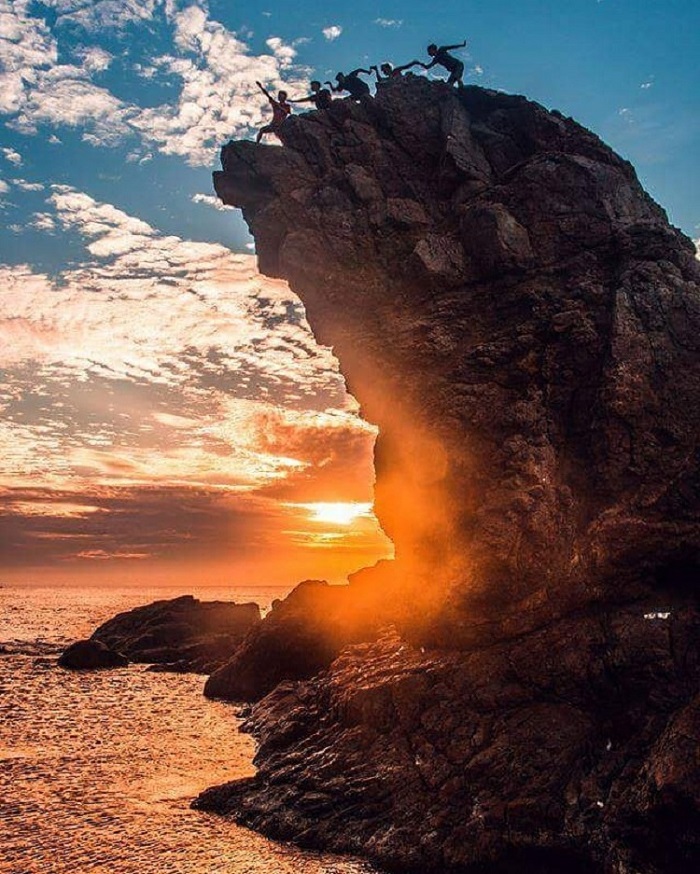 Do đó, bạn hãy cố gắng đến Mũi Nghê Sơn Trà vào lúc sáng sớm tinh mơ để tận hưởng ánh bình minh đầu tiên trên biển. Đó cũng là lúc mà mặt nước biển trở nên lấp lánh, màu sắc biến đổi linh hoạt theo ánh nắng mặt trời. Hình ảnh con sư tử biển oai hùng ẩn hiện dần rõ nét trông ảo diệu, và cực kỳ mê hoặc.
