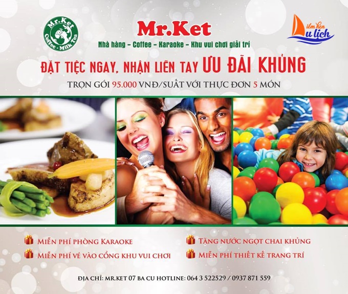 Đặc biệt khi thực khách đặt tiệc với giá trị trên 2 triệu đồng, sẽ được nhà hàng Mr Ket trang trí theo chủ đề của nhà hàng hoàn toàn miễn phí, với tiệc trẻ em Mr Ket còn tặng nước ngọt và vé chơi trò chơi miễn phí tại khu vui chơi trẻ em.... và tiệc người lớn sẽ được miễn phí hát karaoke.