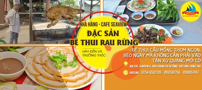 Ngoài các món ăn hải sản tươi sống tại vũng biển Vũng Tàu, NHÀ HÀNG - CAFE SEAVIEW còn có đặc sản Bê thui Cầu Mống béo ngây mà không cần phải vào tận xứ Quảng mới có. Hơn thế nữa, bê thui theo công nghệ Seaview đã ngon lại được các chuyên gia đầu bếp nổi tiếng sử dụng 8 loại dược thảo quý hiếm để tẩm ướm bê trước khi đưa vào thui khiến cho da, thịt bê vừa giòn, vừa mền lại thơm ngon, đượm đà hương sắc của bốn miền. Chính điều đó tạo nên hương vi ẩm thực bản sắc địa phương mà không nơi nào có được, không những vậy mà những vị dược thảo quý này còn giúp nhuận tiêu hóa, chống độc và tăng hàm lượng bổ dưỡng gấp nhiều lần...