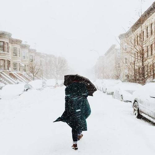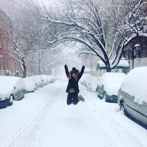 trong bãi đậu xe thành phố New York kèm lời chú thích: “Tuyết kìa các bạn ơi! Yeah!”. Ảnh: Mallory Miller.