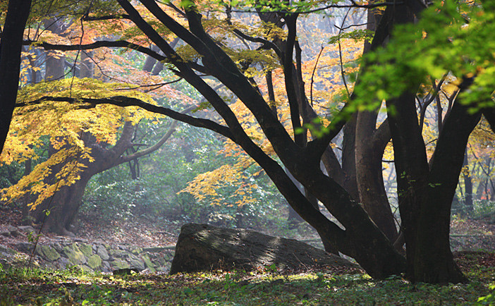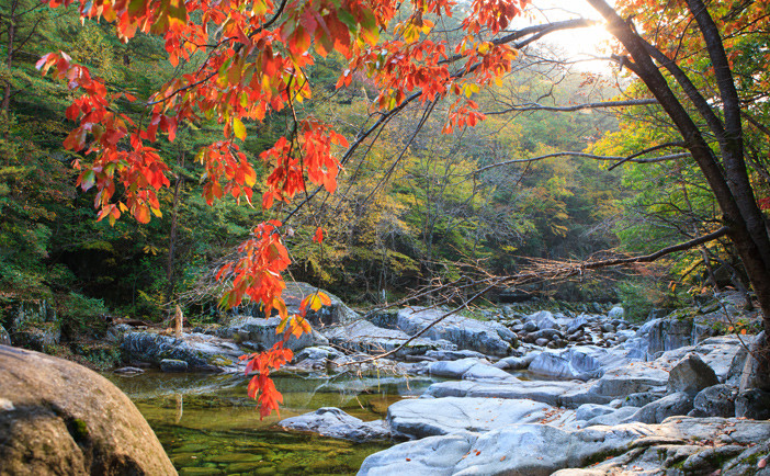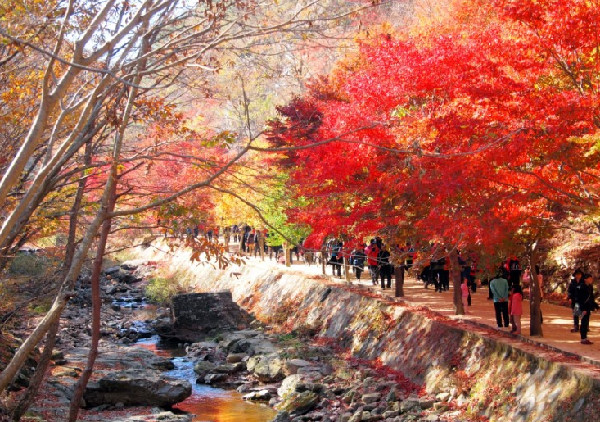 Núi Jirisan, tỉnh Jeolla Nam: Địa điểm này được nhiều người biết đến với phong cảnh đá và các khu rừng rộng lớn nằm trong công viên trải dài khắp 3 tỉnh của Hàn Quốc. Cuối tháng 10, các sườn dốc rực rỡ với màu sắc của lá thu. Bạn có thể chọn cung đường mòn qua thung lũng Pagol và Bam Sagol để ngắm khung cảnh mùa thu ấn tượng ở đây. Ảnh: Studyinkorea.