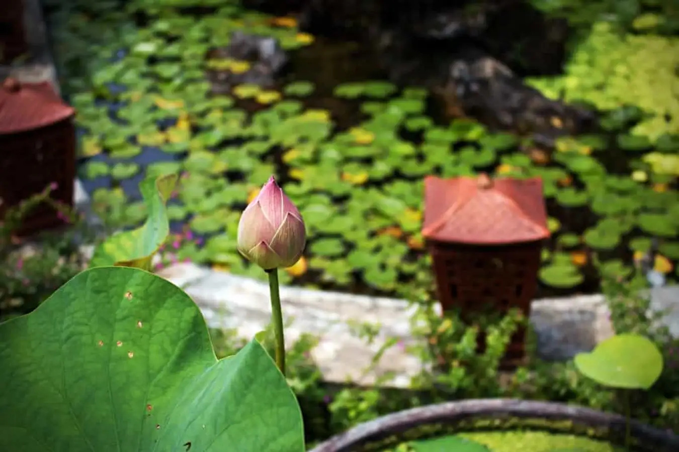 Khuôn viên xanh bên trong thể hiện lối kiến trúc nhà vườn truyền thống, gần gũi với thiên nhiên của người Huế. @Traveloka