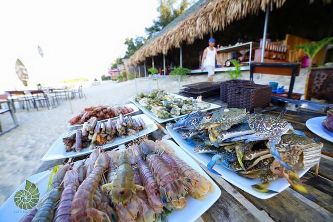 Ngoài nghỉ dưỡng và tham quan các điểm du lịch trên đảo Cô Tô, du khách có thể đặt tiệc nướng BBQ trên biển để chia sẻ những giây phút lãng mạn với gia đình và bạn bè. Set BBQ có giá từ 350.000 đồng một người. Ảnh: Coto Eco Lodge