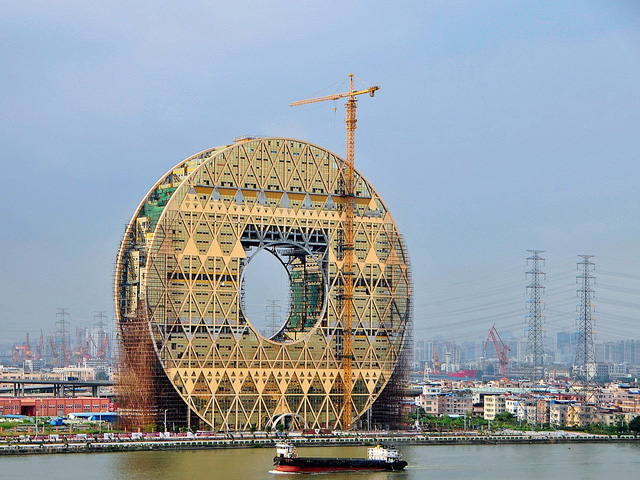 Tòa nhà hình móng ngựa Sheraton ở Hồ Châu, Triết Giang có thiết kế rất lạ mắt. Tòa nhà còn có tên gọi khác là “khách sạn mặt trăng”, với vốn đầu tư lên tới 1.5 tỷ USD.
