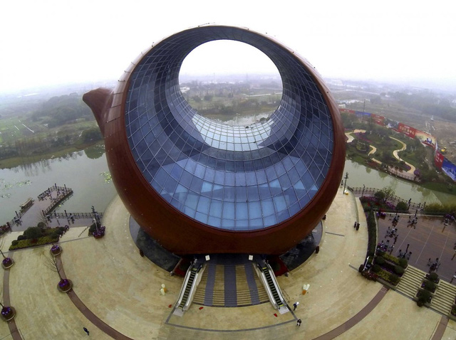 Với kích thước tương đương với tòa nhà 10 tầng, tòa nhà hình ấm trà độc đáo nằm ở thành phố Vô Tích. Được biết, ấm trà bằng đất sét là sản phẩm truyền thống đại diện cho văn hóa địa phương. Bởi vậy, công trình trở thành biểu tượng kiến trúc của Vô Tích.