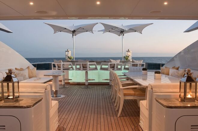 Người chủ mong muốn có một không gian tinh tế, thanh lịch nhưng cũng phải tạo ra cảm giác thoải mái giống ở nhà. Boong tàu như một phòng khách ngoài trời, giúp chủ thuyền và bạn bè có thể tận hưởng nắng gió ngoài biển.