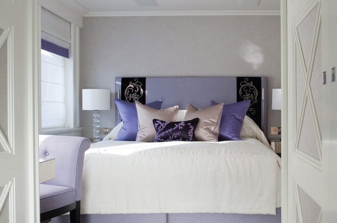 Căn phòng duy nhất trong thuyền có tông màu khác biệt với sắc tím lãng mạn.
