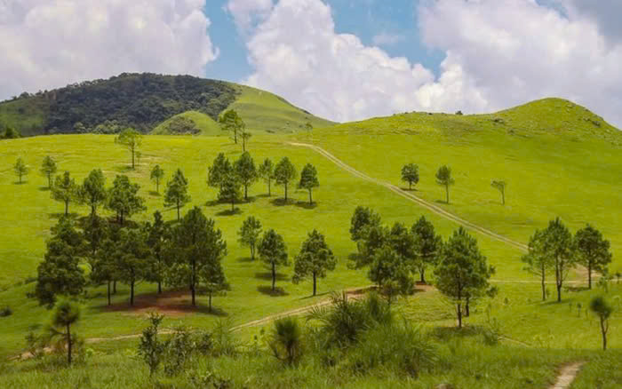Đừng lo dã ngoại ở đây sẽ nắng nóng, lác đác trên thảo nguyên này có những cây xanh mọc theo cụm. Bạn có thể chọn ngồi ở đó. Còn với du khách muốn cắm trại săn mây, bạn hãy dựng lều ở một vị trí thật đẹp để có thể ngắm nhìn toàn bộ vẻ đẹp của thảo nguyên Sam Chiêm thơ mộng.