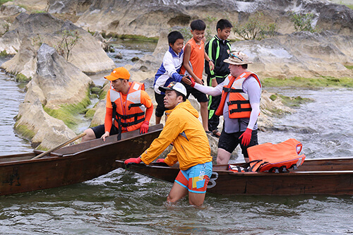 Đa phần người chơi đều lần đầu chèo thuyền độc mộc nên để giữ thuyền đi đúng hướng là rất khó khăn. Có những đoạn sông cạn, người chơi buộc phải khiêng thuyền qua thác ghềnh, hoặc ngâm mình trong nước giữ thuyền đi đúng hướng.
