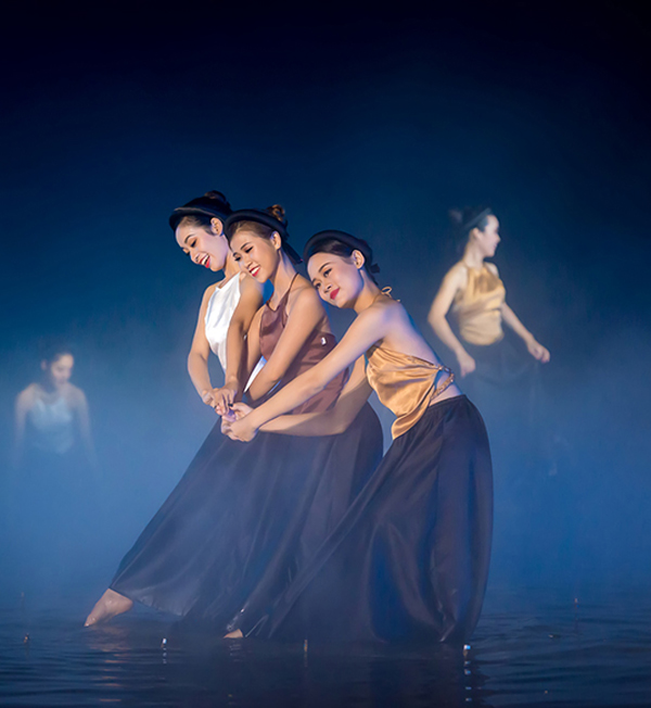 Tiếp theo Nhạc họa chính là sự tái hiện hình ảnh bốn cô gái trong tranh Tố Nữ hàng Trống đang biểu diễn các loại nhạc cụ dân gian khác nhau trong âm nhạc truyền thống Việt Nam bao gồm: Sáo, đàn tỳ bà, đàn nhị và đàn nguyệt. Đây được coi là phân cảnh đẹp nhất vở diễn, đặc biệt giữa khung cảnh dàn tiên nữ trên sân khấu thể hiện những điệu múa uyển chuyển trên mặt nước.![]()