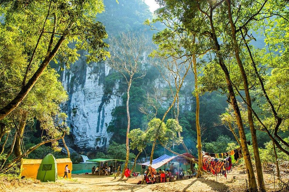 Cắm trại trước cửa hang Thủy Cung Quảng Bình