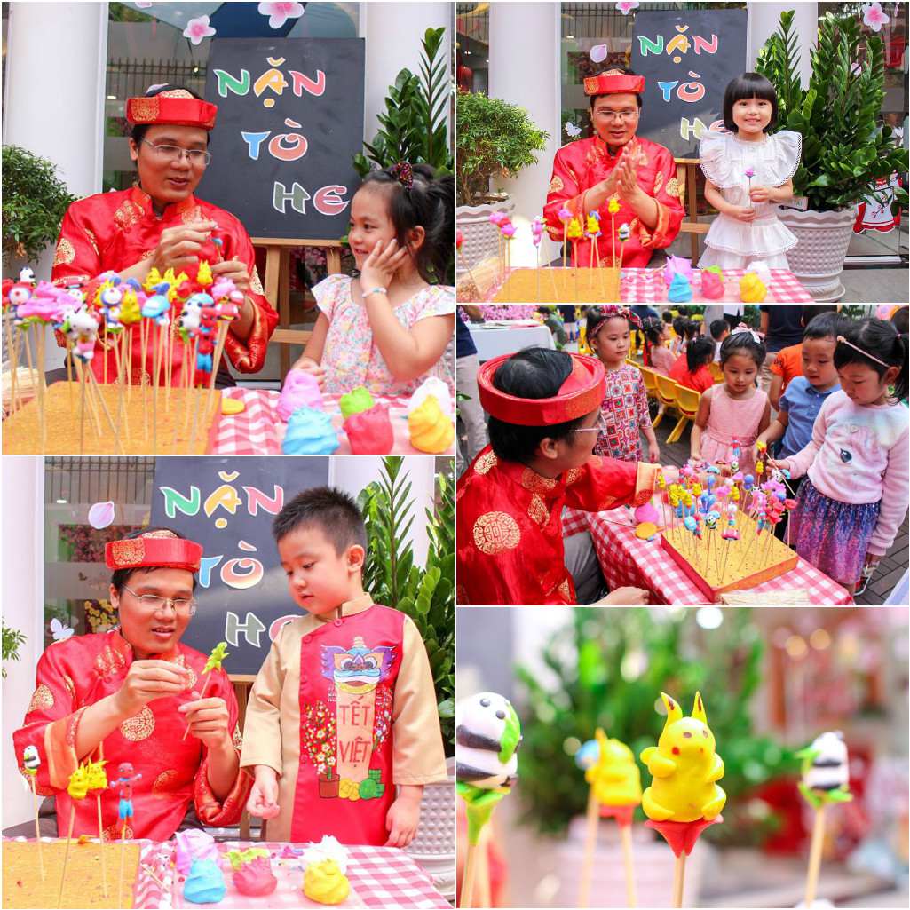 Tại các lễ hội đình, chùa, khu vực dành cho những nghệ nhân nặn tò he luôn thu hút sự chú ý của người đi hội, nhất là trẻ con. Những bàn tay thoăn thoắt cấu những cục bột, phối các màu xanh, đỏ, trắng, vàng cùng đồ nghề đơn sơ như que tre, chiếc lược nhựa, thoáng chốc biến thành hình cô tiên, lão ngư ngồi câu cá hay nhân vật Tôn Ngộ Không múa gậy thần kỳ… Nghe có vẻ dễ dàng, song làm tò he không chỉ đơn thuần cầm bột lên rồi nặn. Trước khi làm người nghệ nhân phải hình dung màu sắc, mảng khối nào sẽ hợp với tính cách nhân vật mình thể hiện.