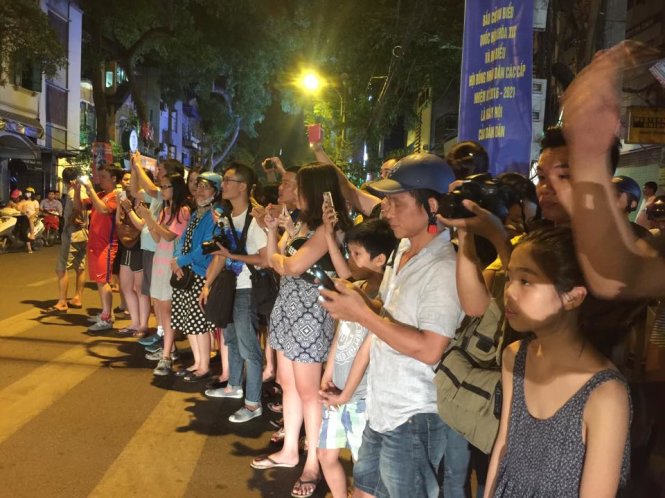 Trong khi ông Obama dùng bữa tối, phía bên ngoài, rất đông người dân đứng đợi trên đường Ngô Thì Nhậm - Ảnh: Xuân Long