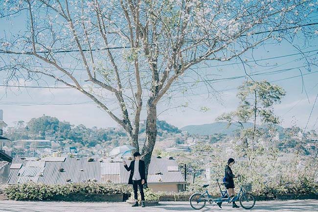Vì thế bạn có thể cùng người yêu mình trải nghiệm cùng nhau đi bộ nắm tay trên con đường hoa ban trắng trên đường Trần Phú của Đà Lạt
