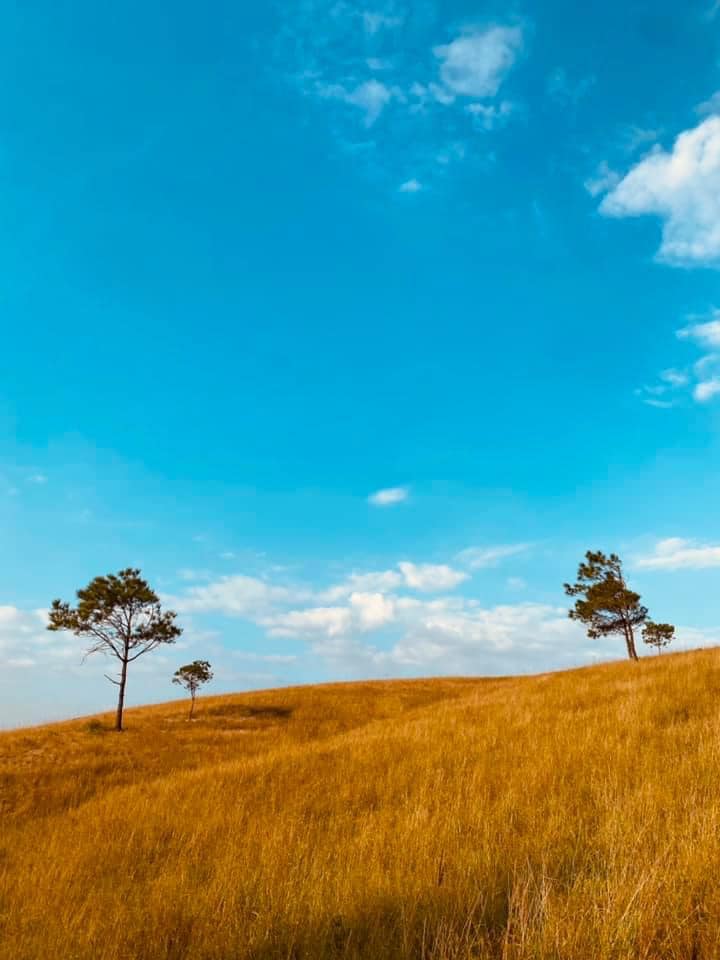 Thay vì những đồi cỏ xanh mướt, khung cảnh đồi cỏ vàng úa trở thành điểm đặc biệt và mới lạ. Du khách đến nơi đây sẽ có ngay hàng trăm bức ảnh đẹp mỹ miều. Vừa chụp ảnh, vừa cắm trại qua đêm tại đỉnh Phượng Hoàng cũng là một trải nghiệm thú vị.