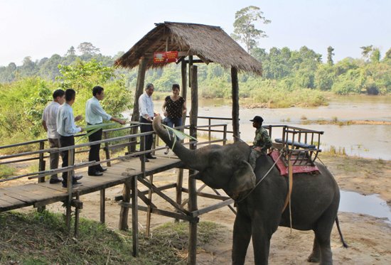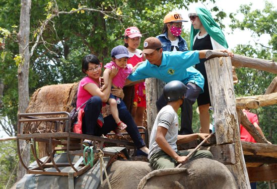 Du khách trải nghiệm loại hình du lịch cưỡi voi trong Vườn Quốc gia Yok Đôn.
