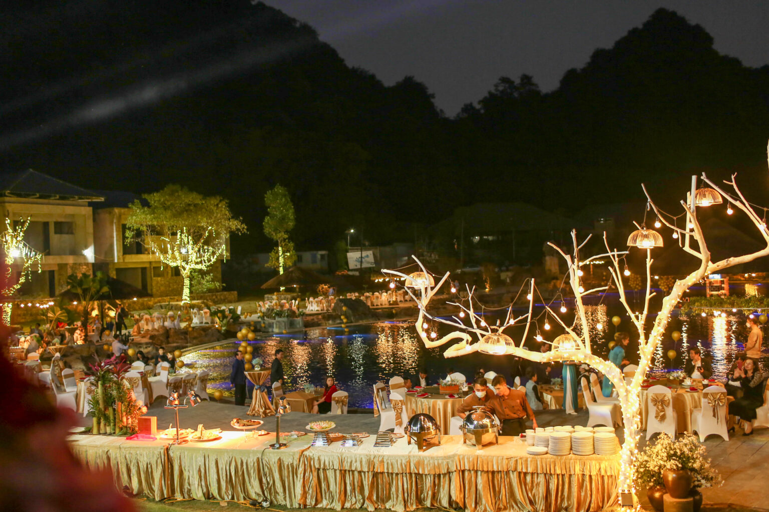 Khuôn viên xung quanh rộng rãi có thể bố trí bàn tiệc, một nơi lý tưởng cho những bữa tiệc ngoài trời lãng mạn, sự kiện tiệc cưới, sinh nhật hay một buổi kỷ niệm, tiệc liên hoan cuối năm.