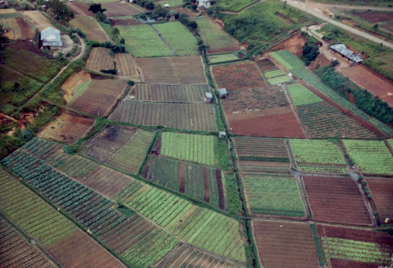 Vườn rau xanh tốt nhìn từ trên cao. Đà Lạt 1969