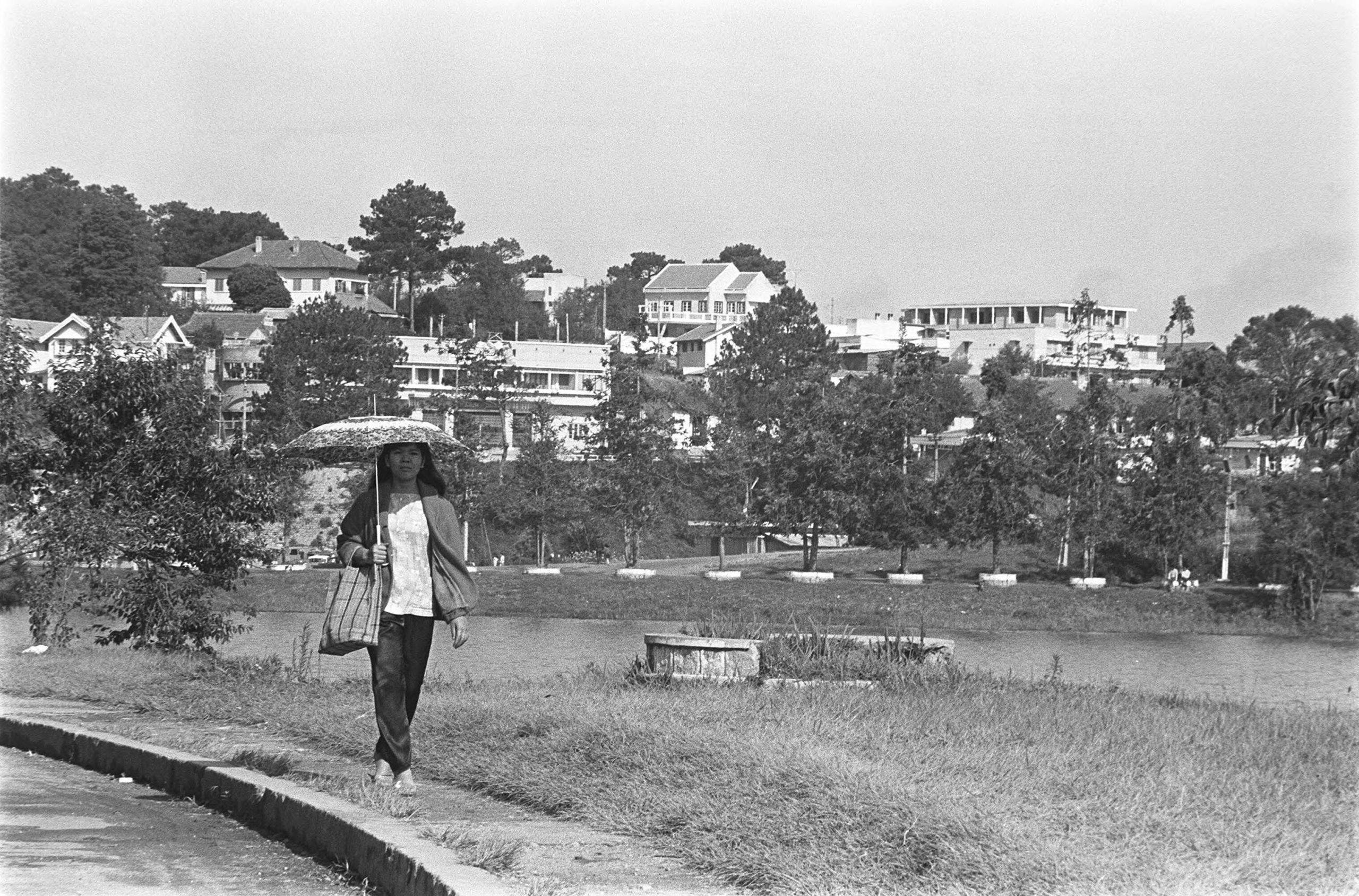 Đà Lạt 1967. Người phụ nữ đi dạo quanh bờ hồ.