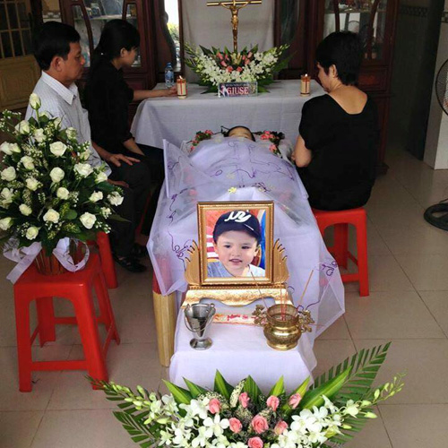 Đám tang của bé trai 3 tuổi Phạm Nguyên (ở Đồng Nai) sáng nay khiến không ít người rơi nước mắt xót thương.