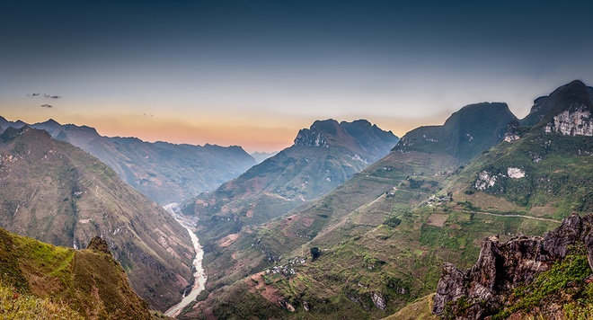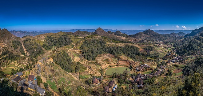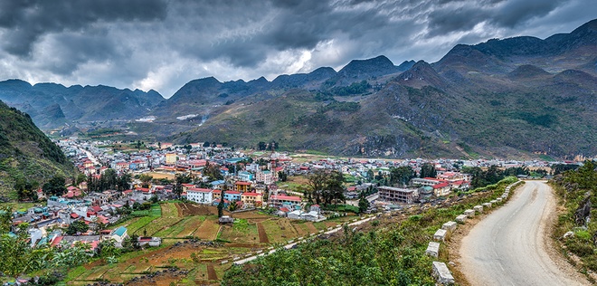 Hà Giang hiện lên với sự hòa quyện bởi màu sắc của thiên nhiên yên bình, những dãy núi đá nhấp nhô cùng nhiều căn nhà mái đã bạc màu thời gian.