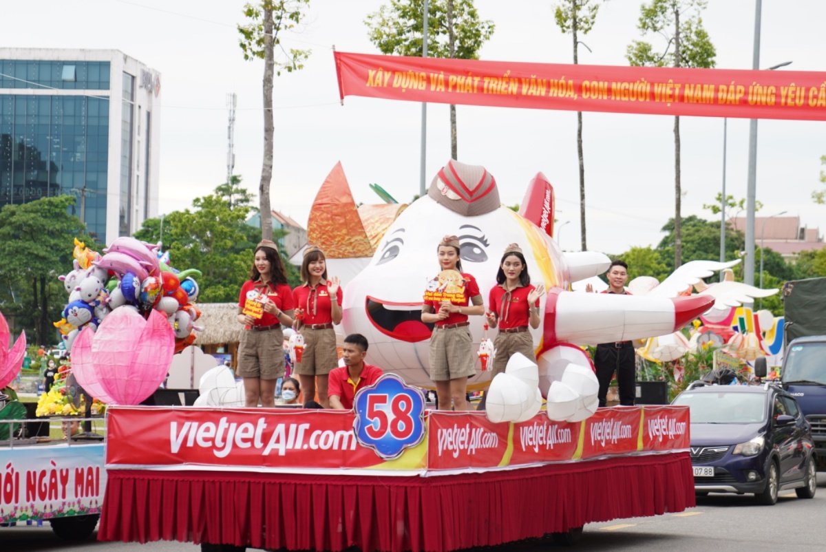 Tổ bay của Vietjet diễu hành cùng lồng đèn cỡ lớn trên các tuyến phố tại TP Tuyên Quang.